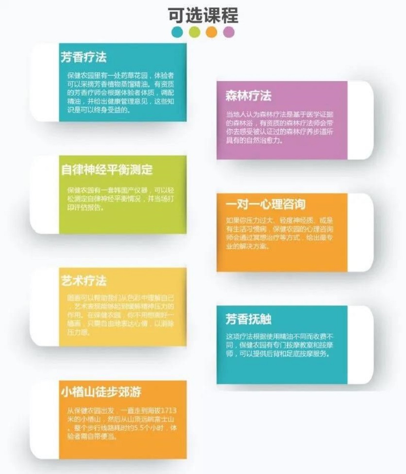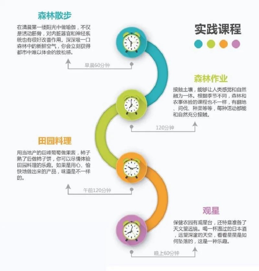 以上是日本FUFU山梨森林康養基地康養課程的設置情況。FUFU基地曾經代表了日本森林康養基地的建設及森林康養產業的發展,對于尚在起步階段的中國森林康養產業,具有很好的借鑒意義。