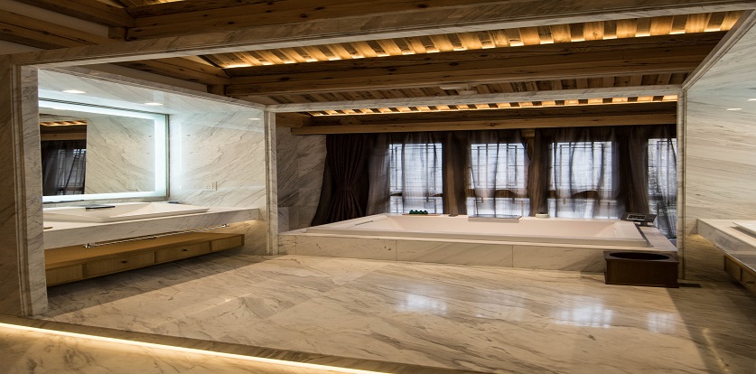 四合院精品酒店室內設計項目位于北京紫禁城以東北方向。項目采用傳統中國建筑四合院概念,由圍繞著一個中庭的四個有著不同獨立功能的區域構成。這四個區域包括一個起居室,一間餐廳,主臥和標準客房。花園對整體視覺效果和設計過程十分重要。通過運用玻璃墻,從四個區域都可以直接看到花園。這四個區域雖然功能獨立,但通過花園相互連通。